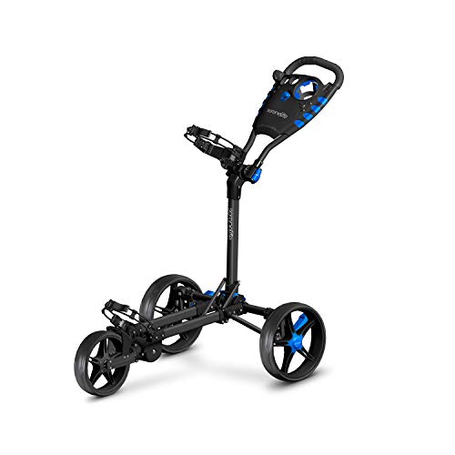MADE TO LAST: The golf push carts 3 wheel folding golf hand cart is made w/ heavy-duty aluminum frame construction material & is equipped w/ upper & lower brackets w/ elastic strap & can fix any size of golf bag. Comes in a stylish black & gray color
