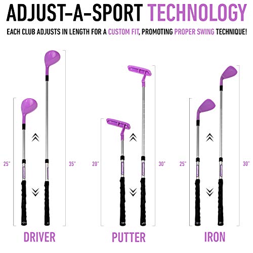 Easy twist & lock length adjustments: each Club features our adjust-a-sport technology, which allows each Club to adjust in length for a custom fit, promoting proper swing technique for each player!